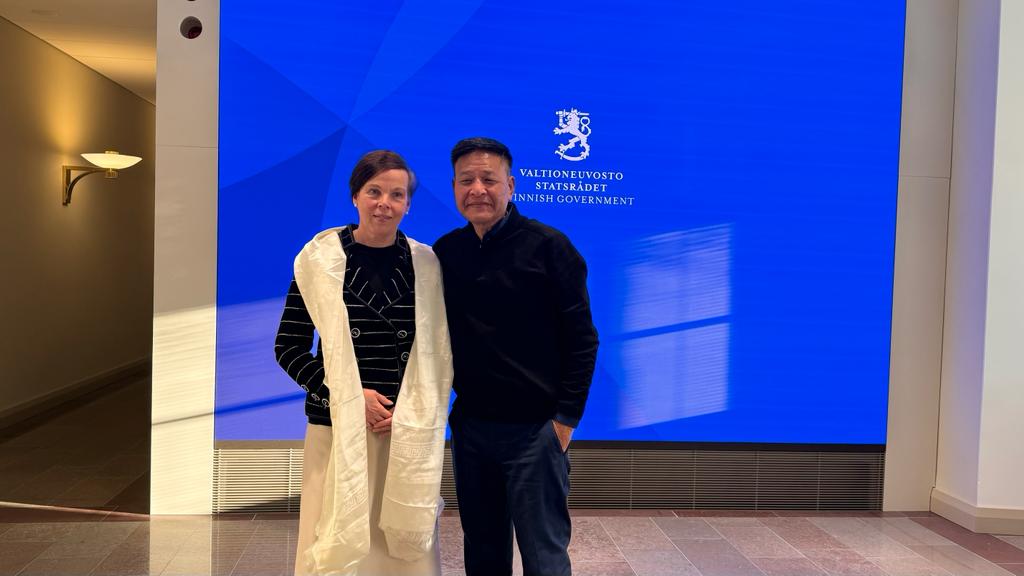 Suomen ihmisoikeussuurlähettiläs Tiina Jortikka-Laitinen ja Sikyong Penpa Tsering 26.1.2024.